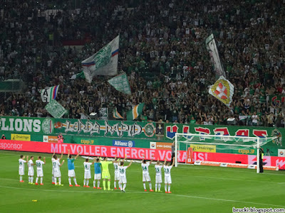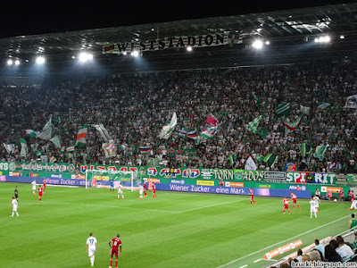 Der Heimanhang neben der Haupttribüne und die Auswärtsfans direkt gegenüber auf der anderen Stadionseite hatten einander gut im Blick.